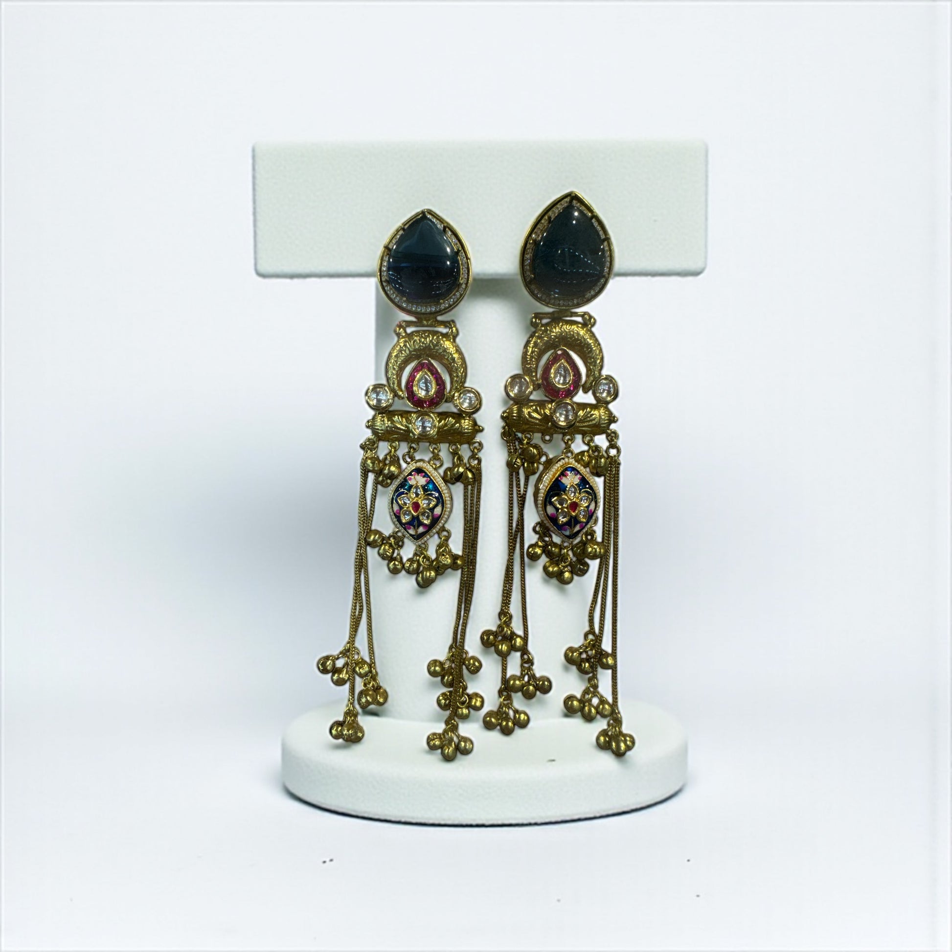 Kashmiri Majestic Enamel Dangler Long Earrings